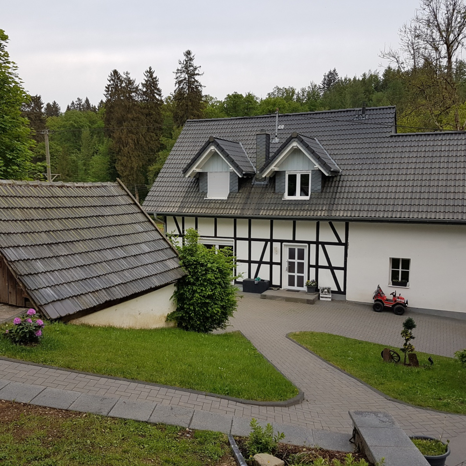 Unser Einfamilienhaus steht auf unserem kleinen Hof, mit einer Scheune und einem Backes und liegt in Friesenhagen, im Ortsteil Unterweidenbruch. Ca. 3,5 km vom Ortskern entfernt. Die nächsten größeren Orte sind Wildbergerhütte und Freudenberg. Wir liegen im Dreiländereck und am nördlichsten Zipfel von Rheinland-Pfalz im Kreis Altenkirchen. Auch das Wildenburger Land genannt. Zwischen vielen Wiesen, Weiden und Feldern kann man hier die Natur genießen.
