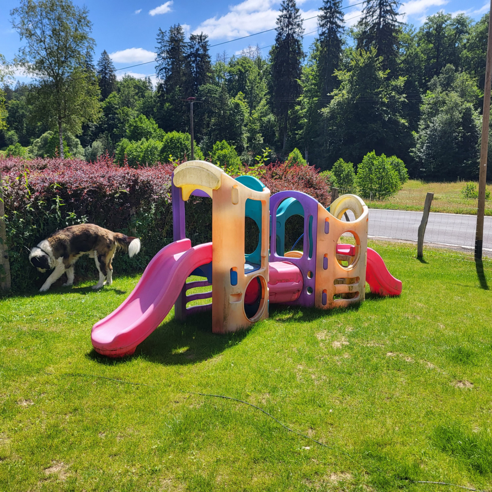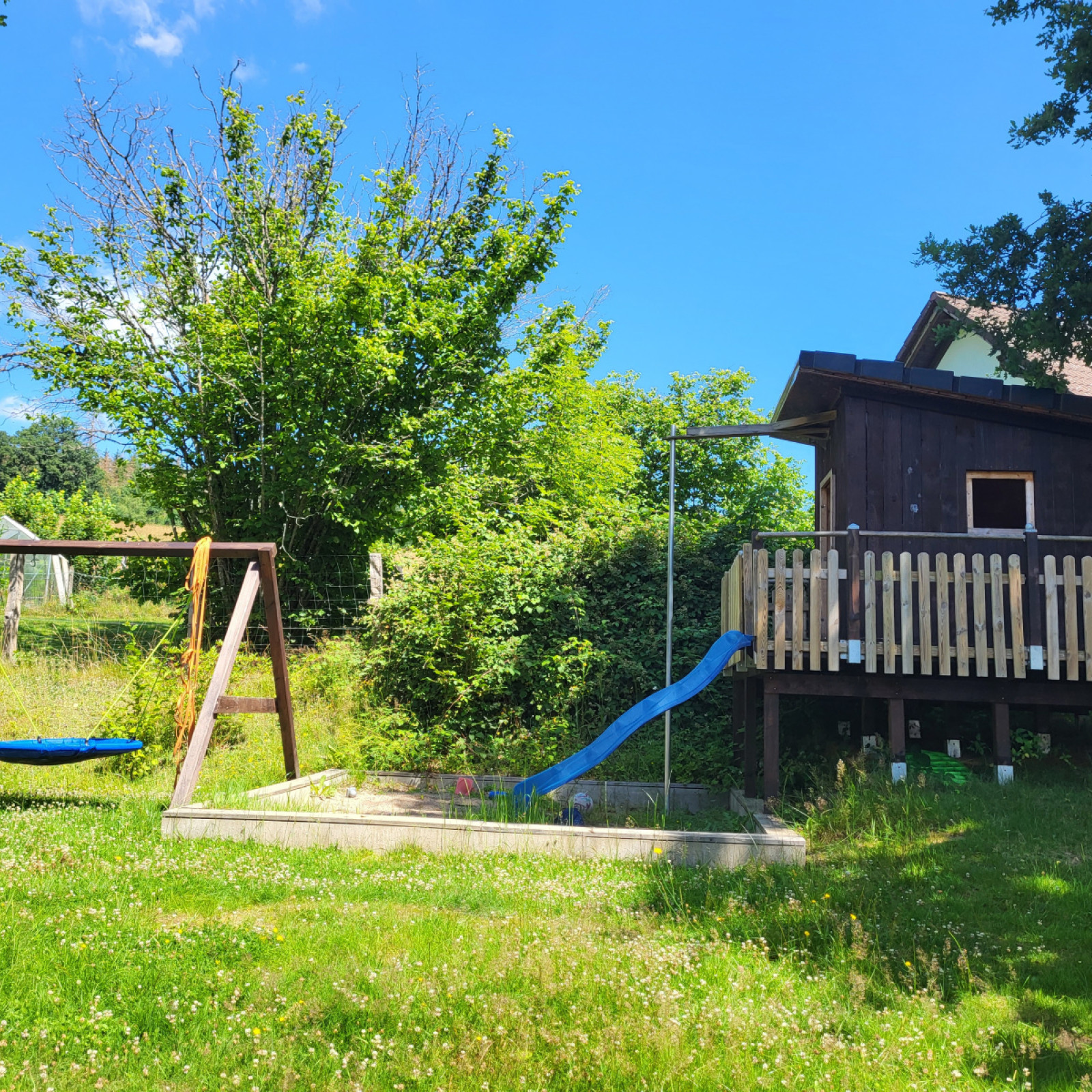 Unser Grundstück beträgt 3500 m² und ist komplett umzäunt. Hier ist ausreichen Platz zum Spielen und Toben .
