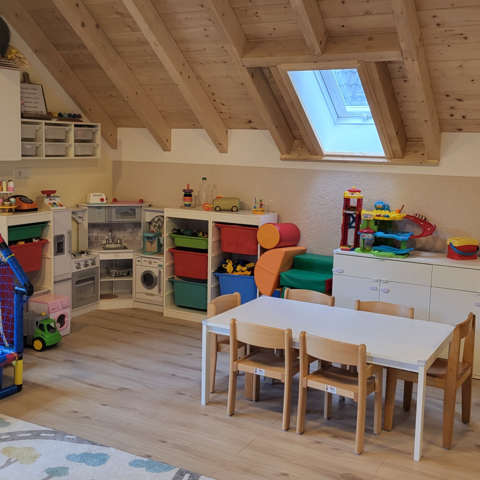 Unsere alte Scheune wurde 2022 komplett neu renoviert und dort entstand 2023 eine 54 m2 Wohnung, die nun nur für die Kindertagespflege genutzt und kindgerecht umgebaut wurde.